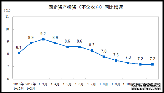 2017年全国固定资产投资(不含农户)增长7.2%
